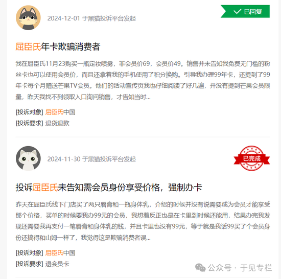 另外,在黑猫投诉 【下载黑猫投诉客户端】平台上,滥用者对屈臣氏倾销会员卡的“猫腻”和套路更是诸多发火。
